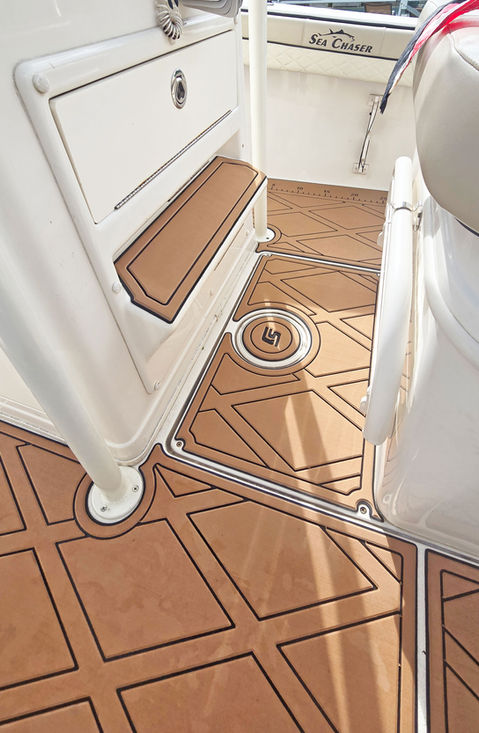 Want to add your logo or custom design? We can include custom artwork to be added to your Hi-Tech Deck marine floor. We have a variety of colors and patterns to choose from. Need help in designing? Our team creates a custom vision for your boat to complement style so you turn heads on the water.